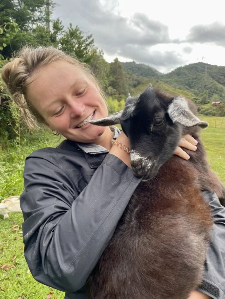 For a few years, I traveled and worked on farms across the US and Latin America. My time connecting with animals of all kinds - like this sweet goat in Colombia - continues to remind me of the simple joy and happiness animals bring.